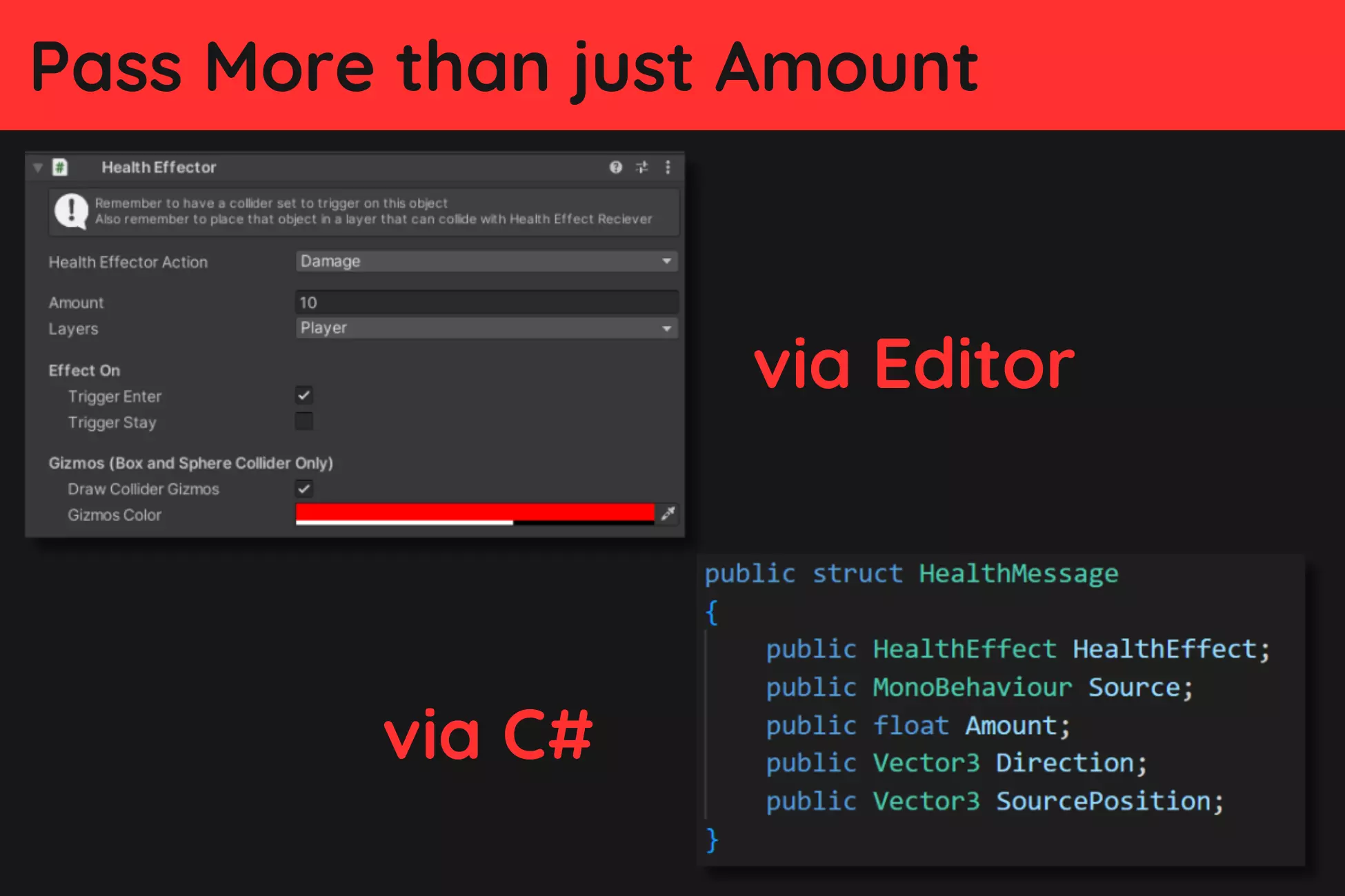 - Directional damage, damage angle, and ability to pass additional data on damage or healing.