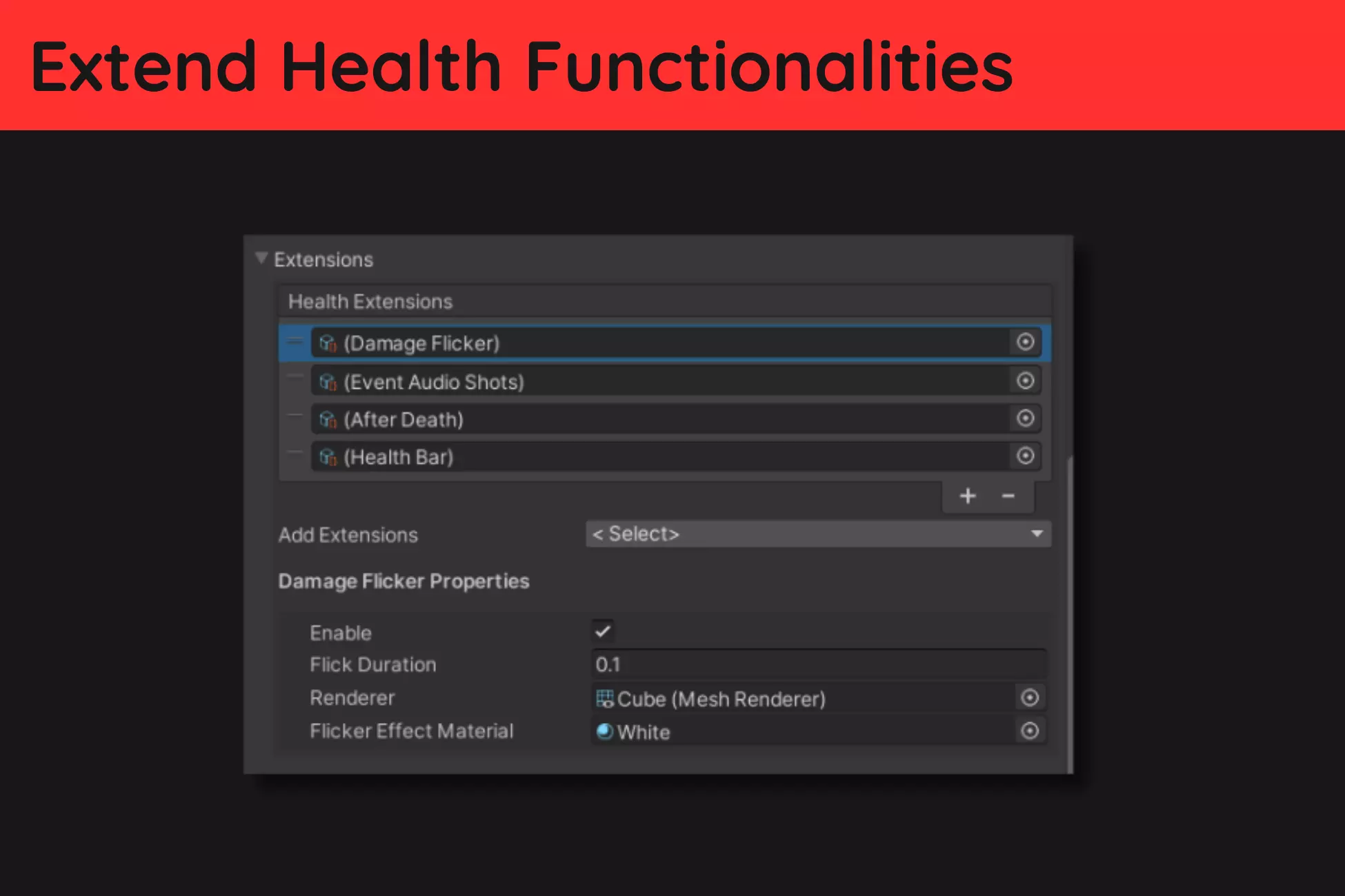 - Easy-to-use inspector interface for configuring health-related data and flexible scripting support.